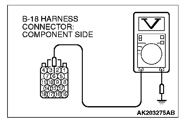 1. Disconnect the connector B-18 and measure at the harness side.