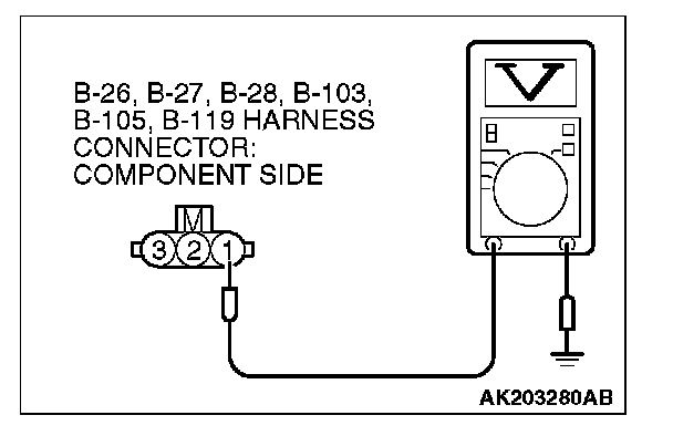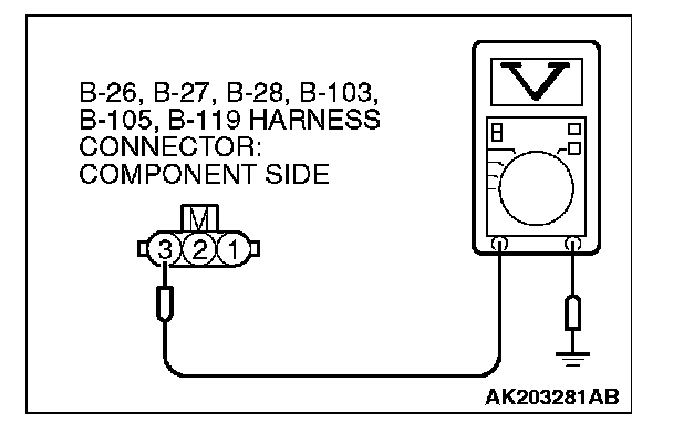 STEP 3. Measure the power supply voltage at ignition coil connectors B-26, B-27, B-28, B-103, B-105, B-119.
