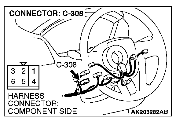 NOTE: Check harness after checking intermediate connectors A-13, B-32, C-31, C-211, C-215 and C-308. If intermediate connectors are damaged, repair or replace them. Refer to Harness Connector Inspection. Then confirm that the malfunction symptom is eliminated.