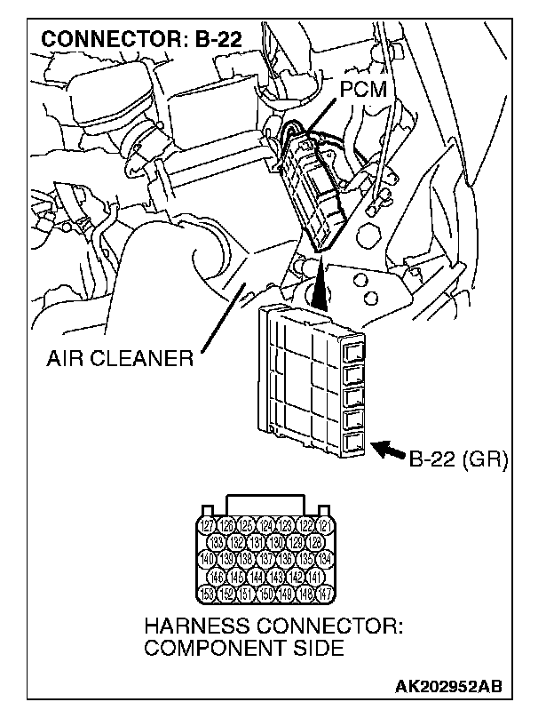 STEP 6. Check harness connector B-22 at PCM for damage.