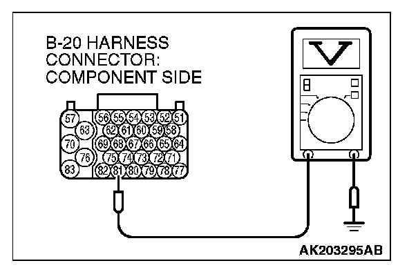 1. Disconnect the connectors B-20 and measure at the harness side.