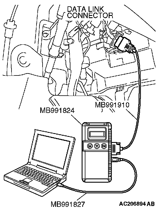 3. Connect special tool MB991827 to special tool MB991824 and the personal computer.