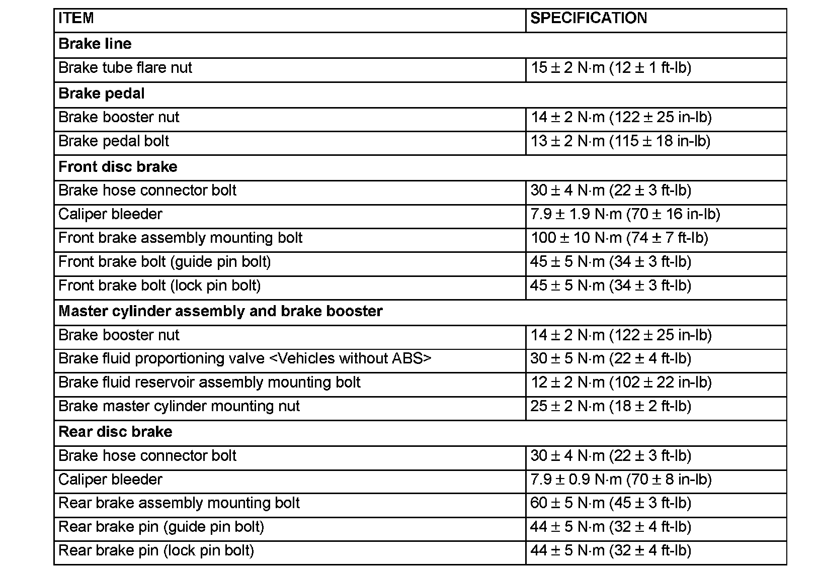 Fastener Tightening Specifications
