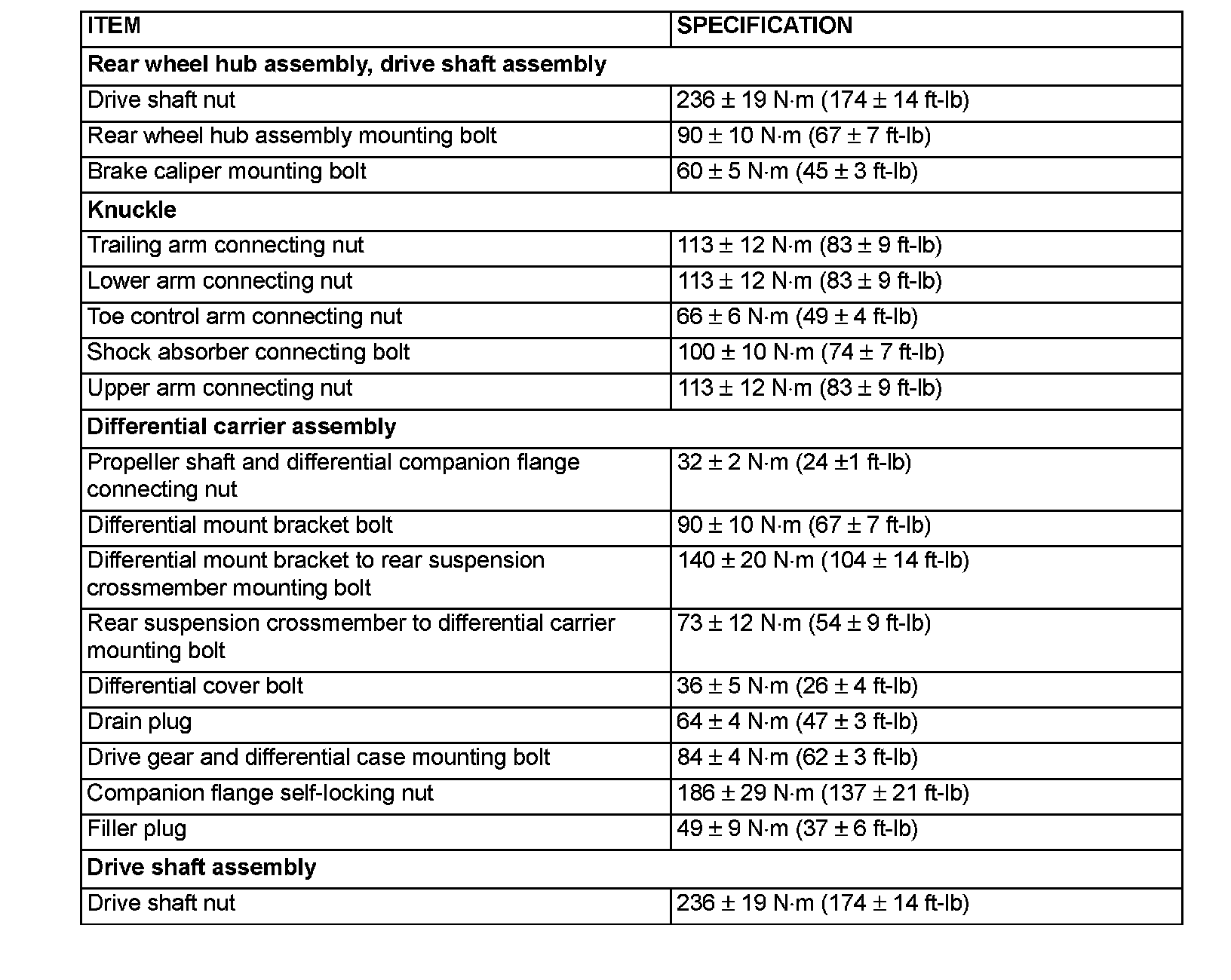 Fastener Tightening Specifications