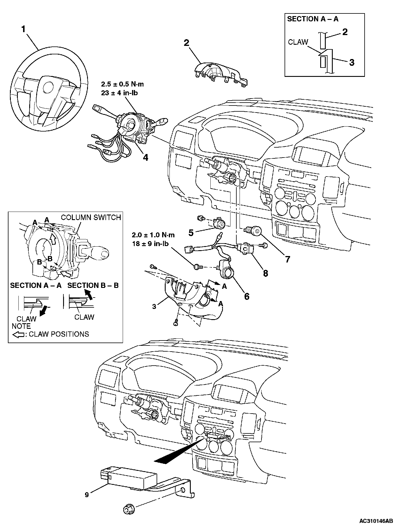 - Before removing the steering wheel, air bag module assembly and clock spring refer to Service Precautions and Air Bag Module and Clock Spring (