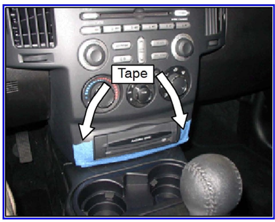 4. Apply masking tape to the corners of the center console to prevent scratching during floor console disassembly.