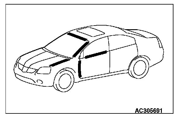 1. Attach cloth tape to every place, such as panel seams, projections, molding seams, glass and body seams, etc. which might conceivably be the source of wind noise.