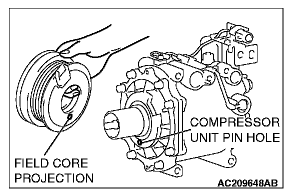 Line up the pin hole on the compressor unit with the field core projection and attach.