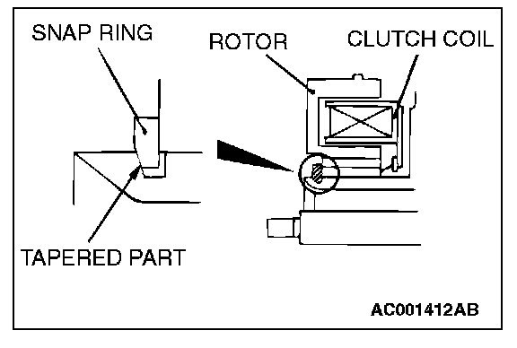 Using snap ring pliers, fit the snap ring so that the snap ring's tapered part is on the outside.