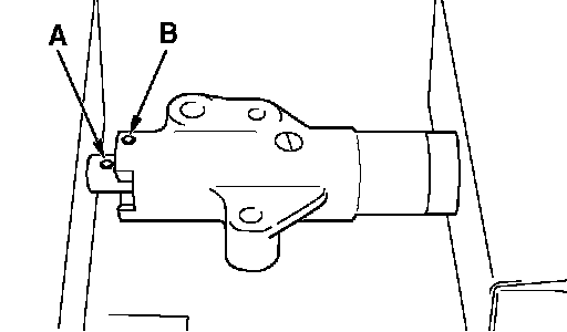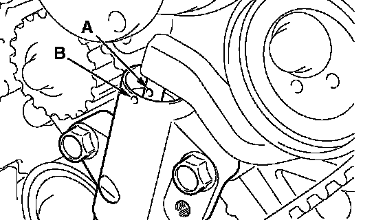 1. Slowly compress the timing belt tensioner adjuster rod using a press or vice, then align the set hole A of the rod with set hole B of the timing belt tensioner adjuster cylinder.