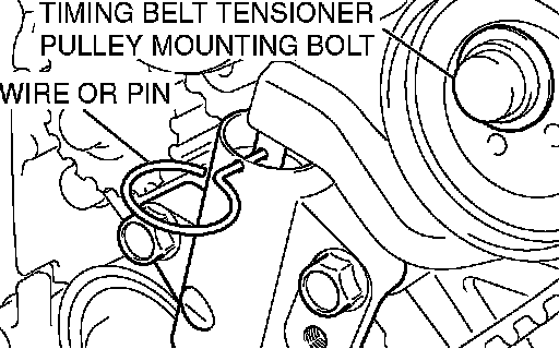 7. Remove wire or pin inserted to timing belt tensioner adjuster.