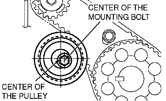 CAUTION: When tightening the mounting bolt, ensure that the timing belt tensioner pulley does not rotate with the bolt. Allowing it to rotate with the bolt can cause deficient tension of the belt.