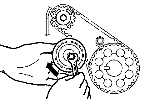 8. Adjust the valve timing belt tension.