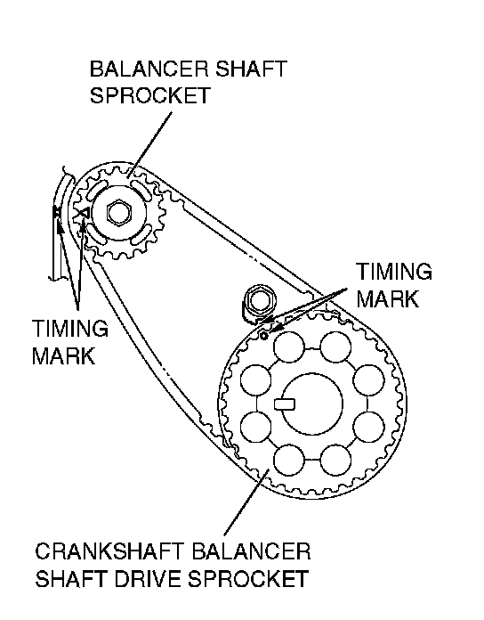 1. Ensure that the crankshaft balancer shaft drive sprocket timing marks and balancer shaft sprocket timing marks are aligned.