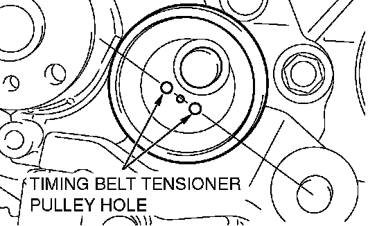 NOTE: When replacing the timing belt tensioner adjuster with new parts, the timing belt tensioner adjuster is set with a pin.