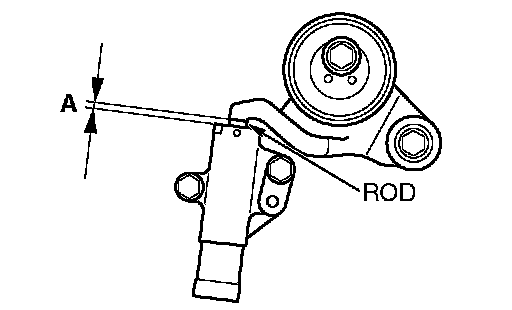 Also the projection of timing belt tensioner adjuster rod (A) is within the standard value, appropriate tension is applied.
