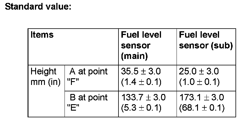 3. If all checks are correct, go to fuel unit height check. If any check is not correct, replace the fuel pump module or fuel level sensor (sub).