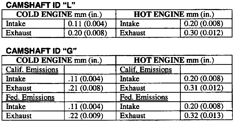 ^ Valve clearance specifications