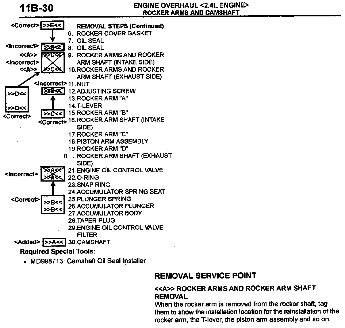 2004 Galant Service Manual, Volume 1, page 11B-30. Correct the removal service point indicators as shown.