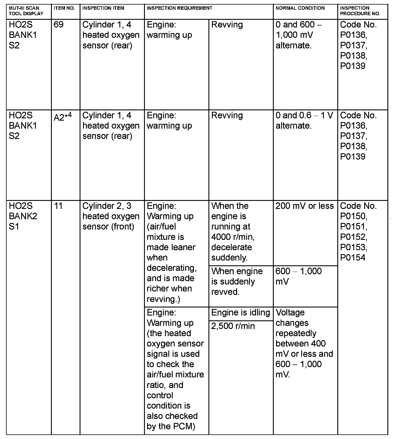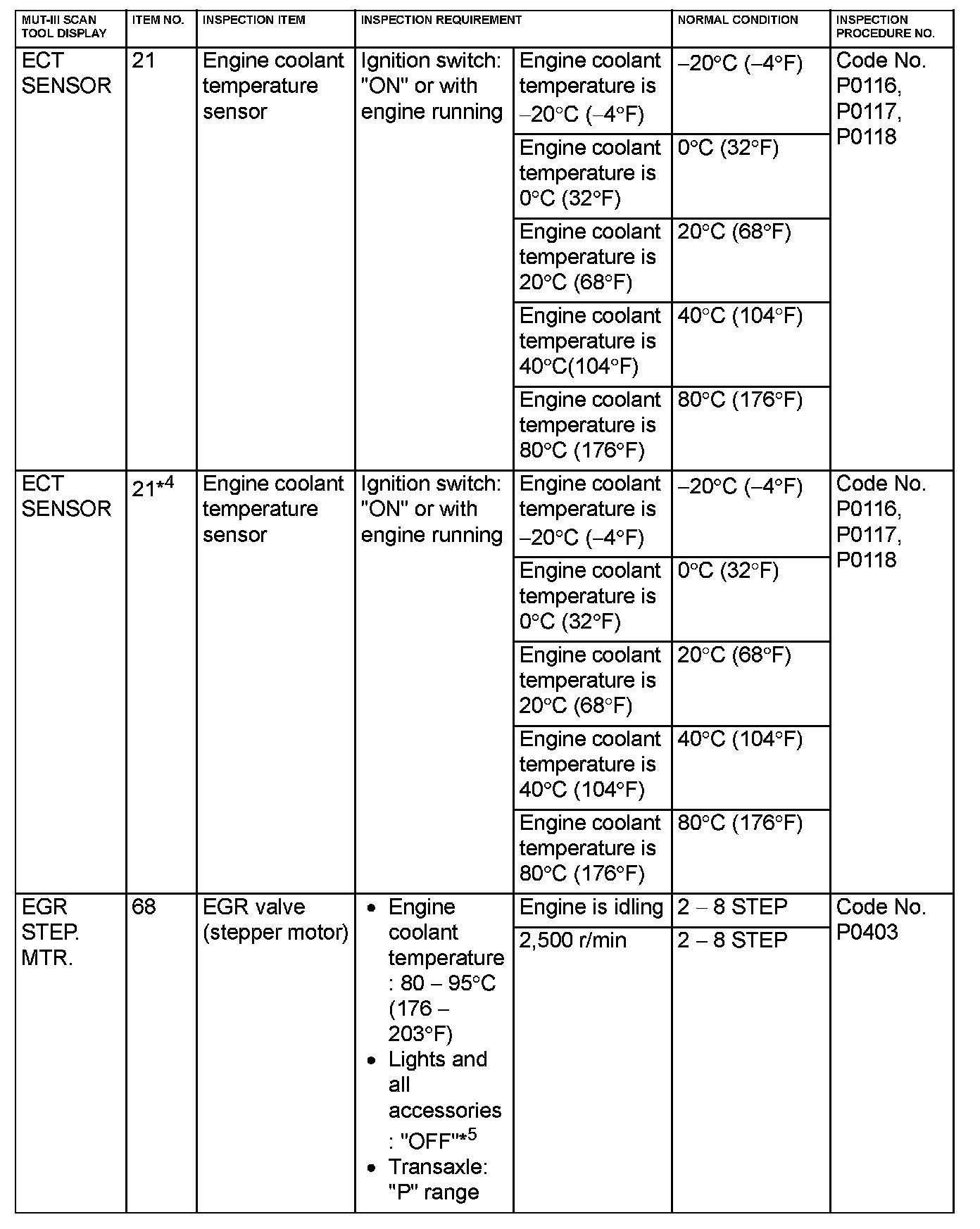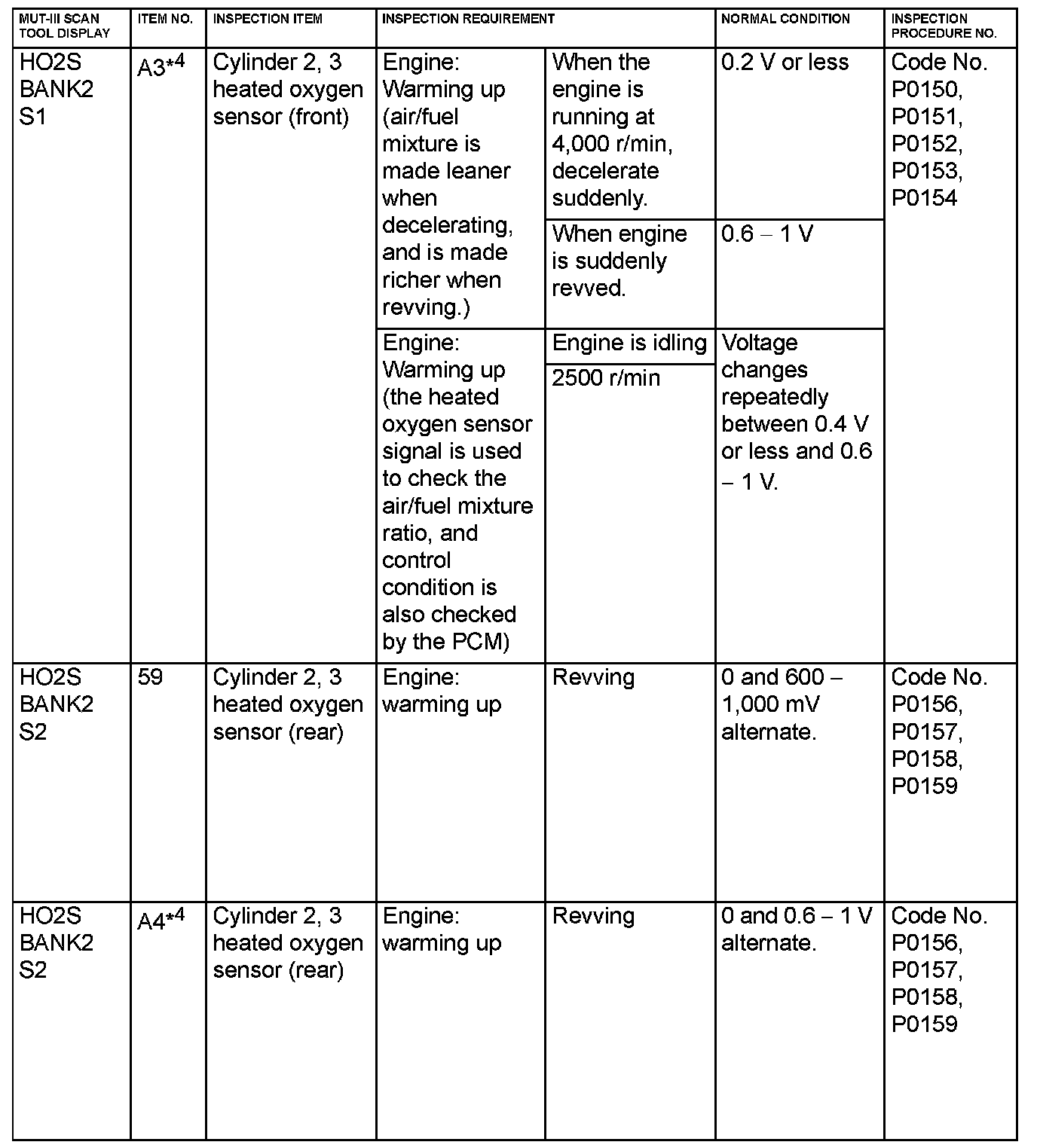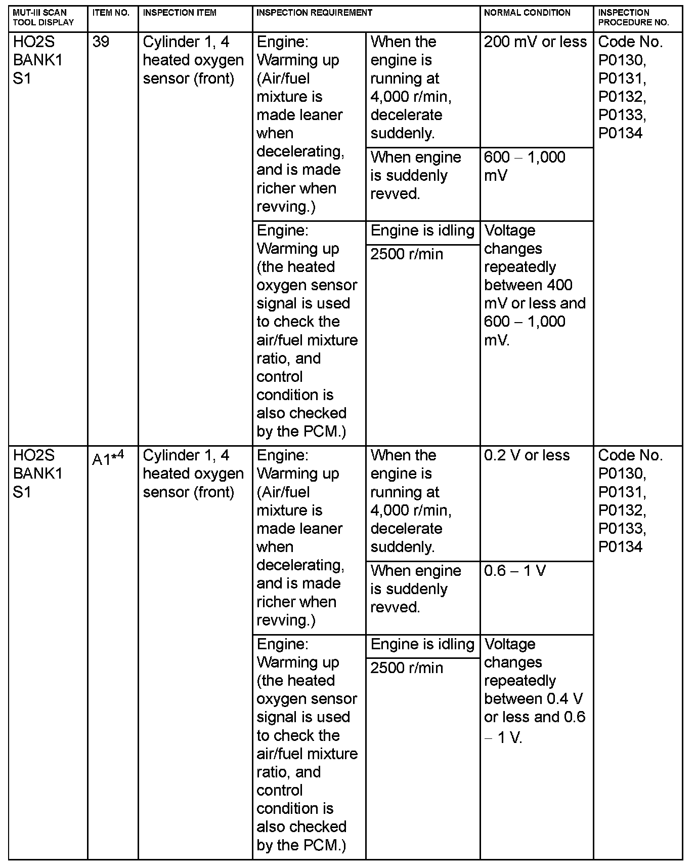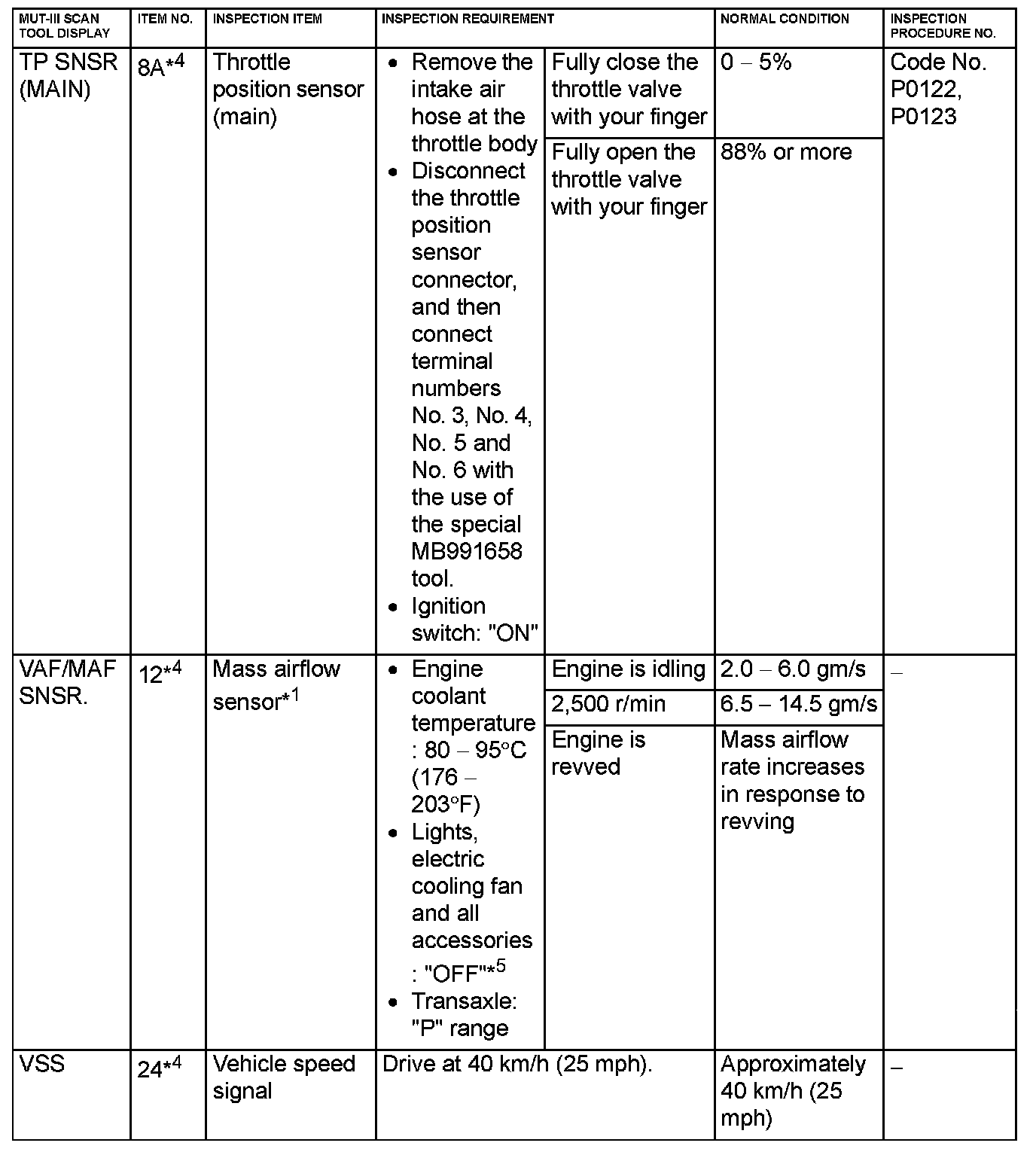 NOTE: *1: In a new vehicle [driven approximately 500 km (311 mile) or less], the mass airflow sensor output value is sometimes 10% higher than the standard value.