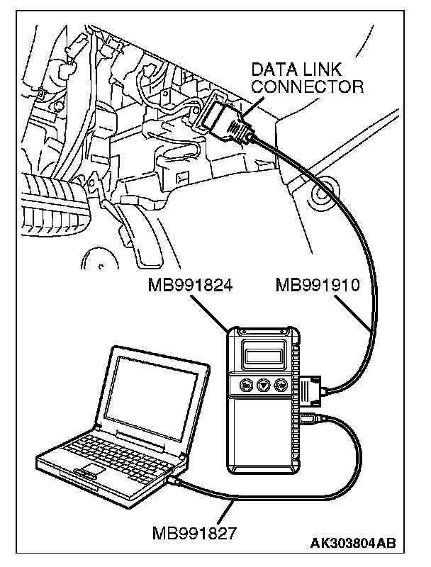 1. Connect scan tool MB991958 to the data link connector.