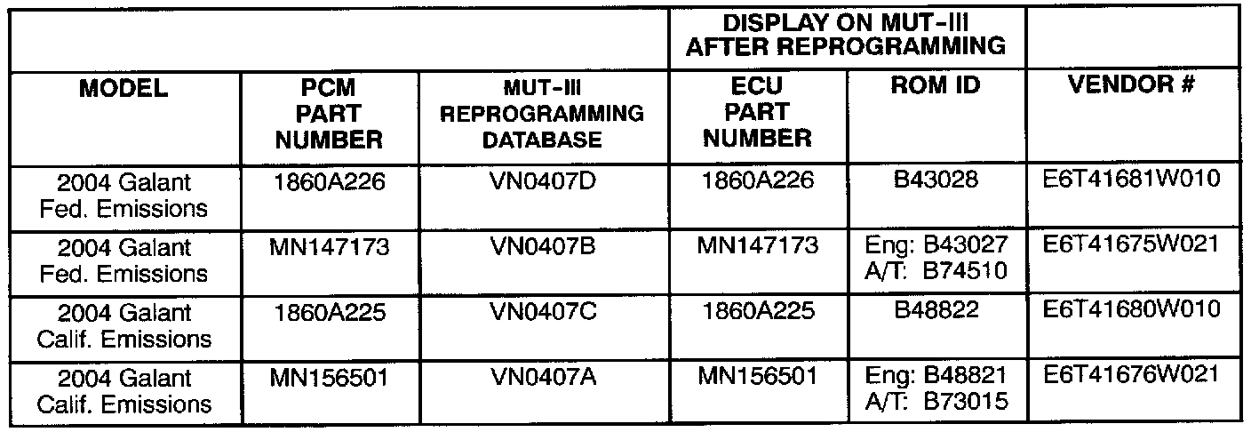 2004 Galant models equipped with 4G69 2.4L MIVEC engine