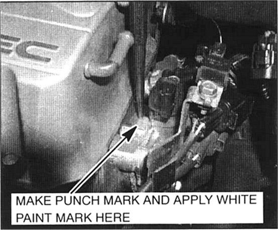 1. Inspect the rear of the cylinder head for a punch mark with white paint.