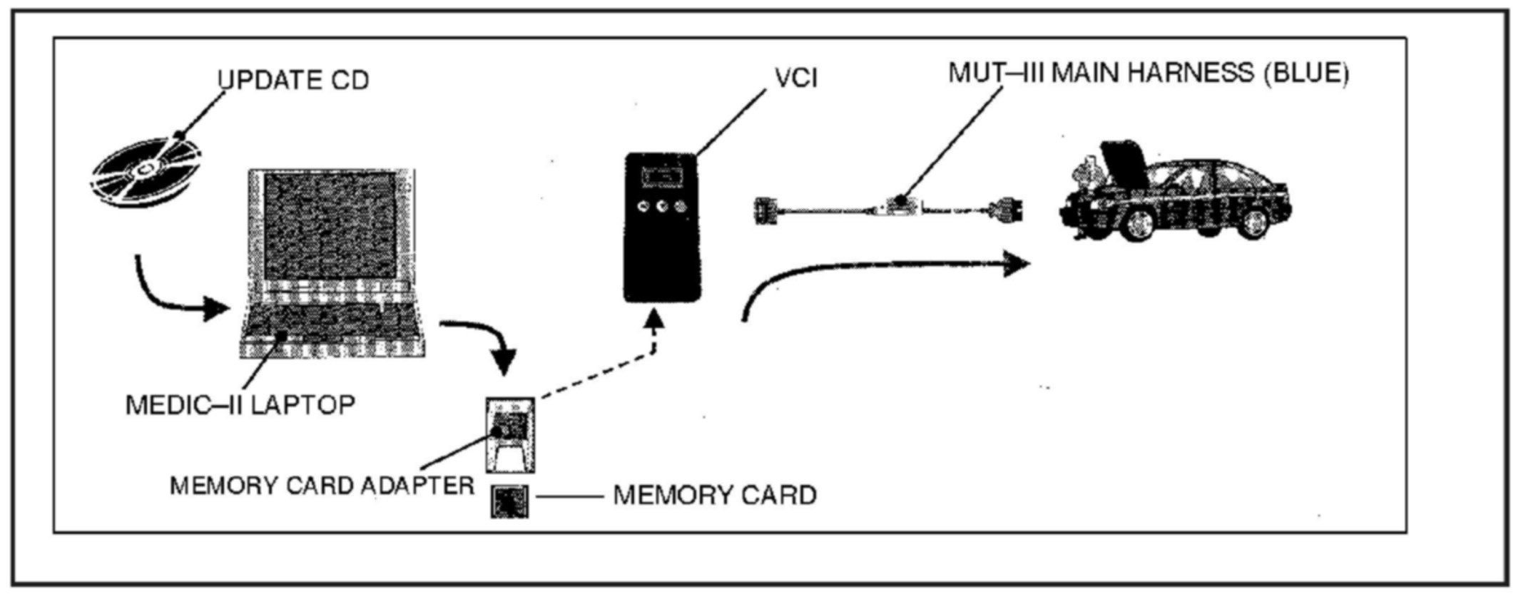^ If it is not, verify that the correct database update is in the MUT-III. Verify the correct database was transferred to the memory card, and that the memory card is properly installed in the VCI.