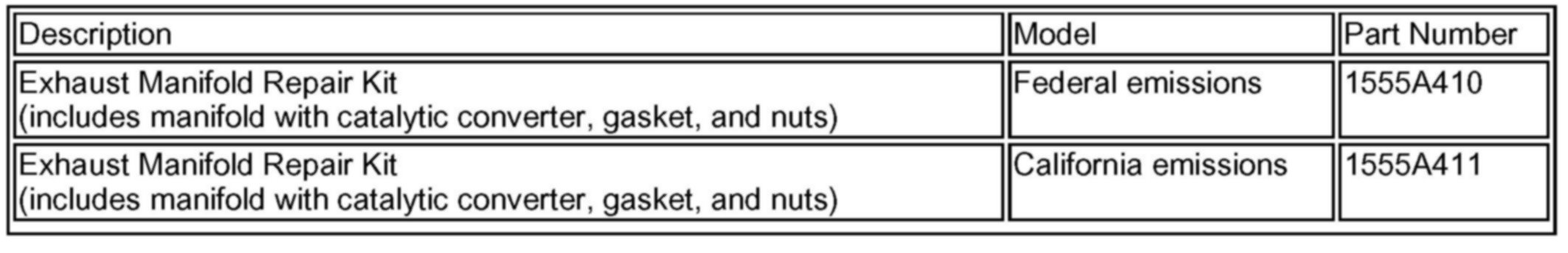 ^ If an affected vehicle has a Service Engine Soon (SES) lamp on and DTC P0421 and/or P0431 set (before reprogramming the PCM), also replace the warm-up catalytic converter, using an exhaust manifold repair kit.