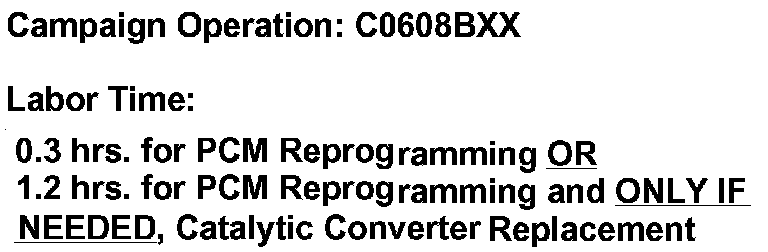 PCM REPROGRAMMING FOR CATALYTIC CONVERTER OVERHEATING - EMISSIONS RECALL CAMPAIGN