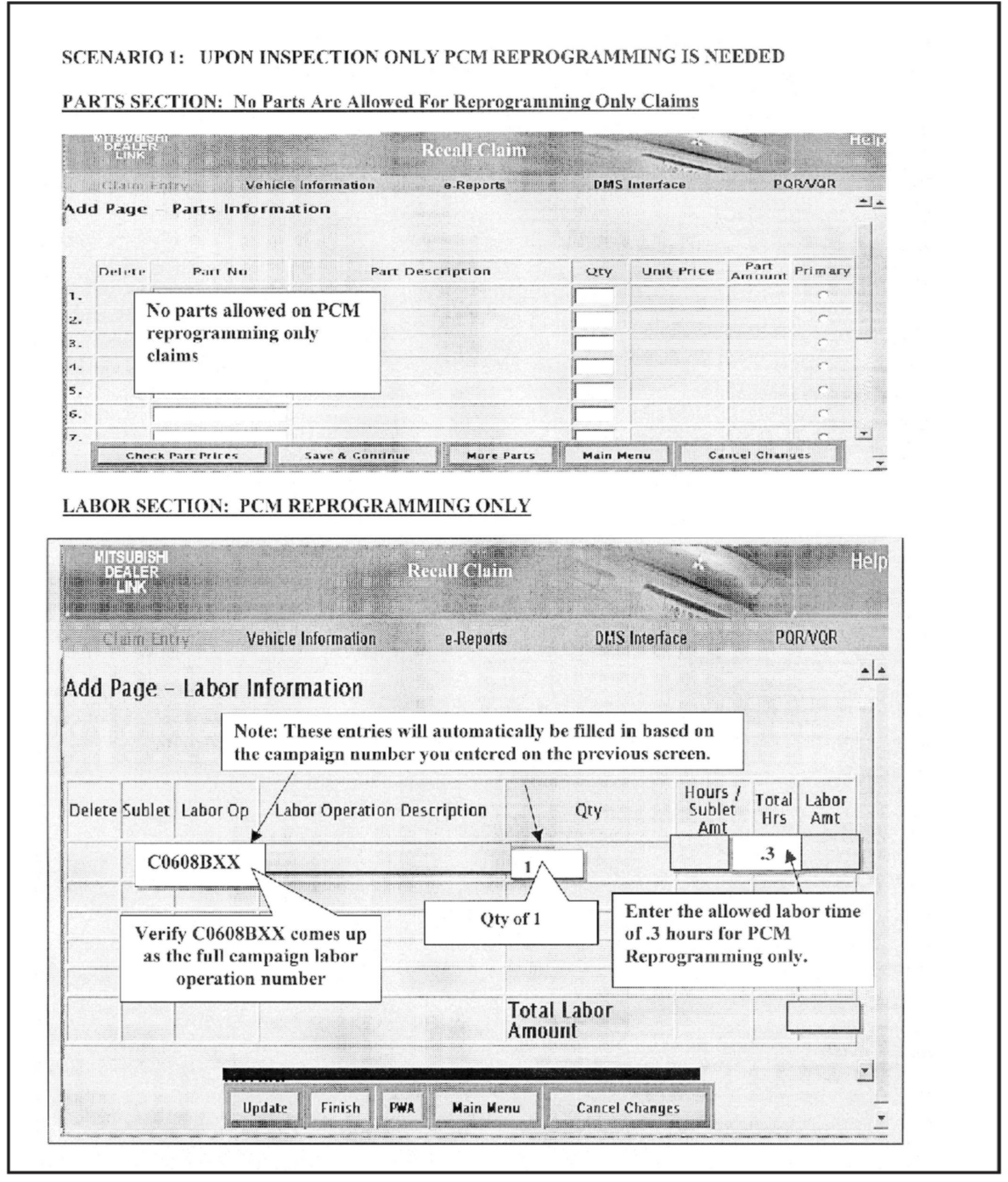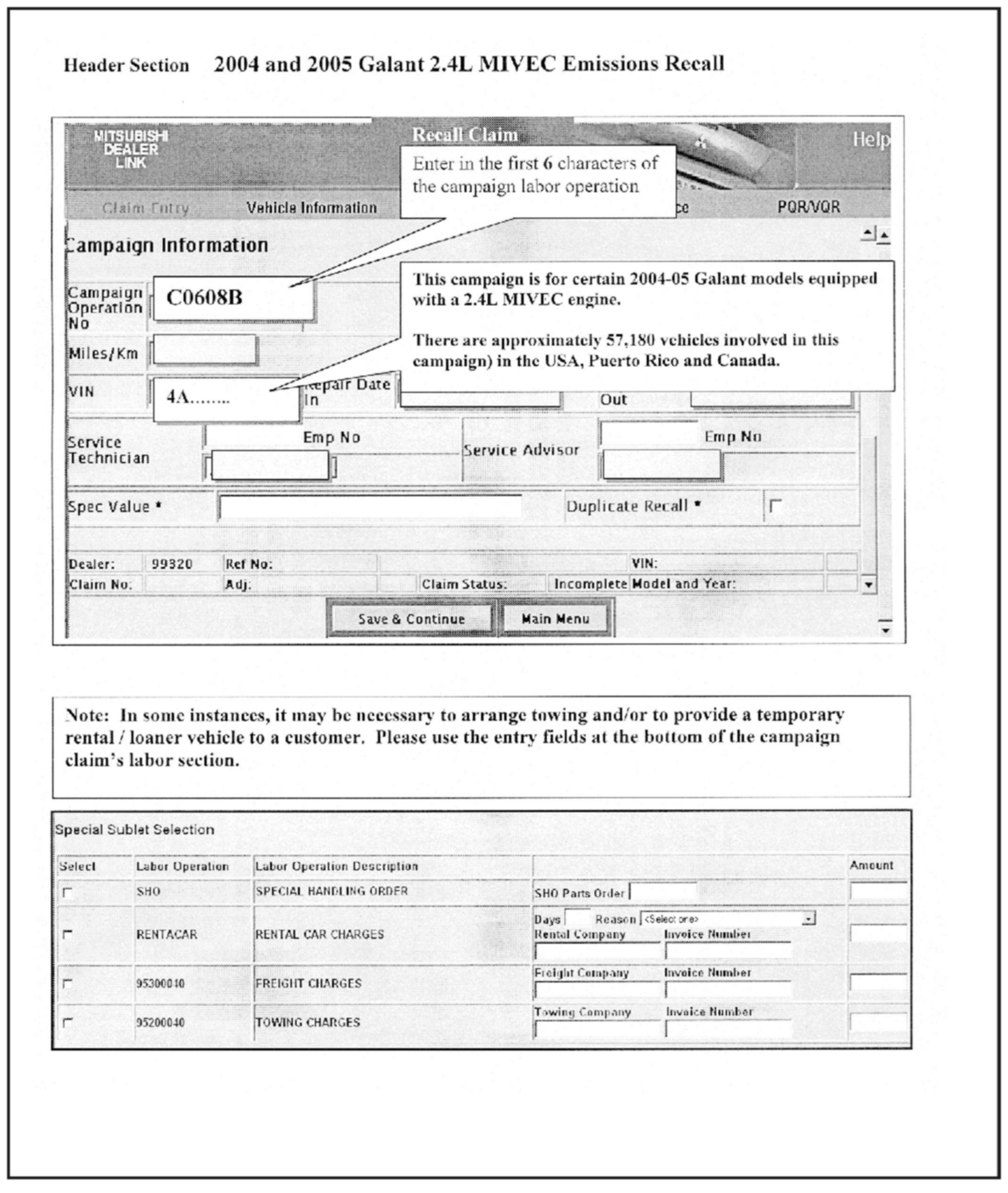 Claims for this campaign must be entered as recall Type "C" claims in the Mitsubishi Dealer Link (MDL).