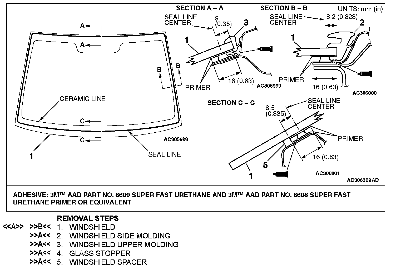 8. When reusing the windshield, remove the adhesive still adhering to the windshield, and clean with 3M(TM) AAD Part number 8906 or equivalent.