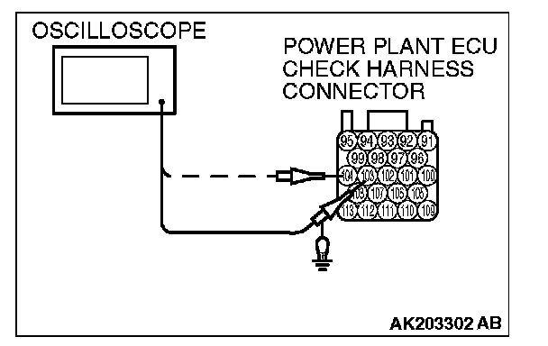 3. Connect the oscilloscope to check harness terminal No. 103 (Check the crankshaft position sensor signal wave pattern).