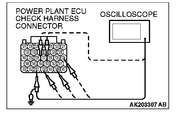2. Connect the oscilloscope probe to each check harness connector terminal to analyze each cylinder: