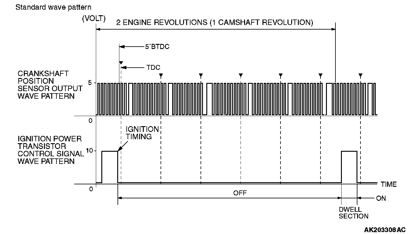Point: The power transistor control signal (ignition timing) is advanced when the engine speed is increased.