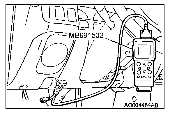 CAUTION: To prevent damage to scan tool MB991502, always turn the ignition switch to the "LOCK" (OFF) position before connecting or disconnecting scan tool MB991502.