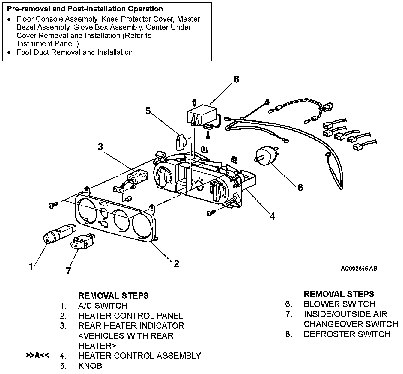 HEATER CONTROL ASSEMBLY, A/C SWITCH AND INSIDE/OUTSIDE CHANGEOVER SWITCHINSTALLATION SERVICE POINT