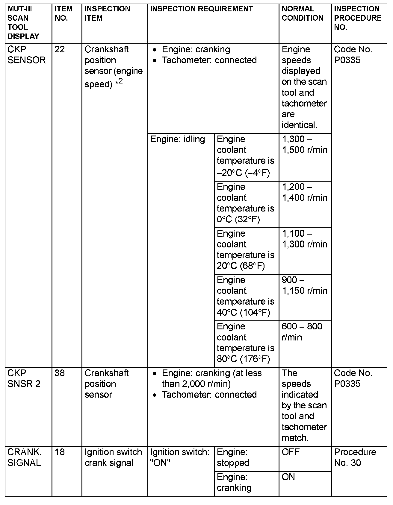 NOTE: *3: The injector drive time represents the time when the cranking speed is at 250 r/min or below when the power supply voltage is 11 volts.