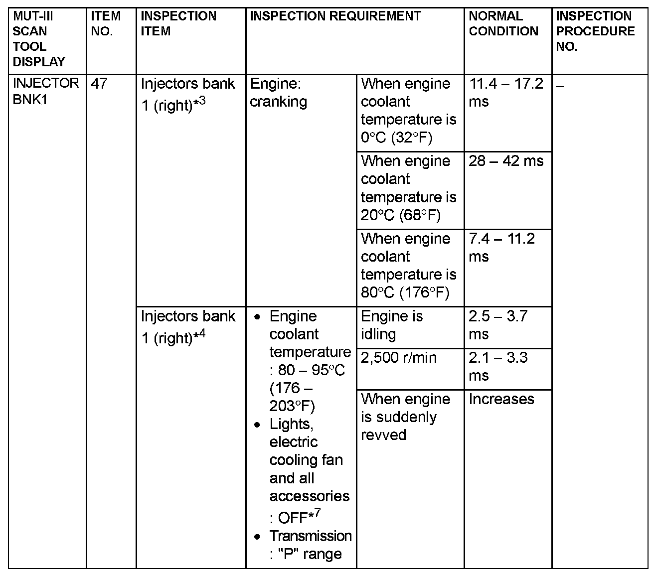 NOTE: *4: In a new vehicle [driven approximately 500 km (311 mile) or less], the injector drive time is sometimes 10% longer than the standard time.