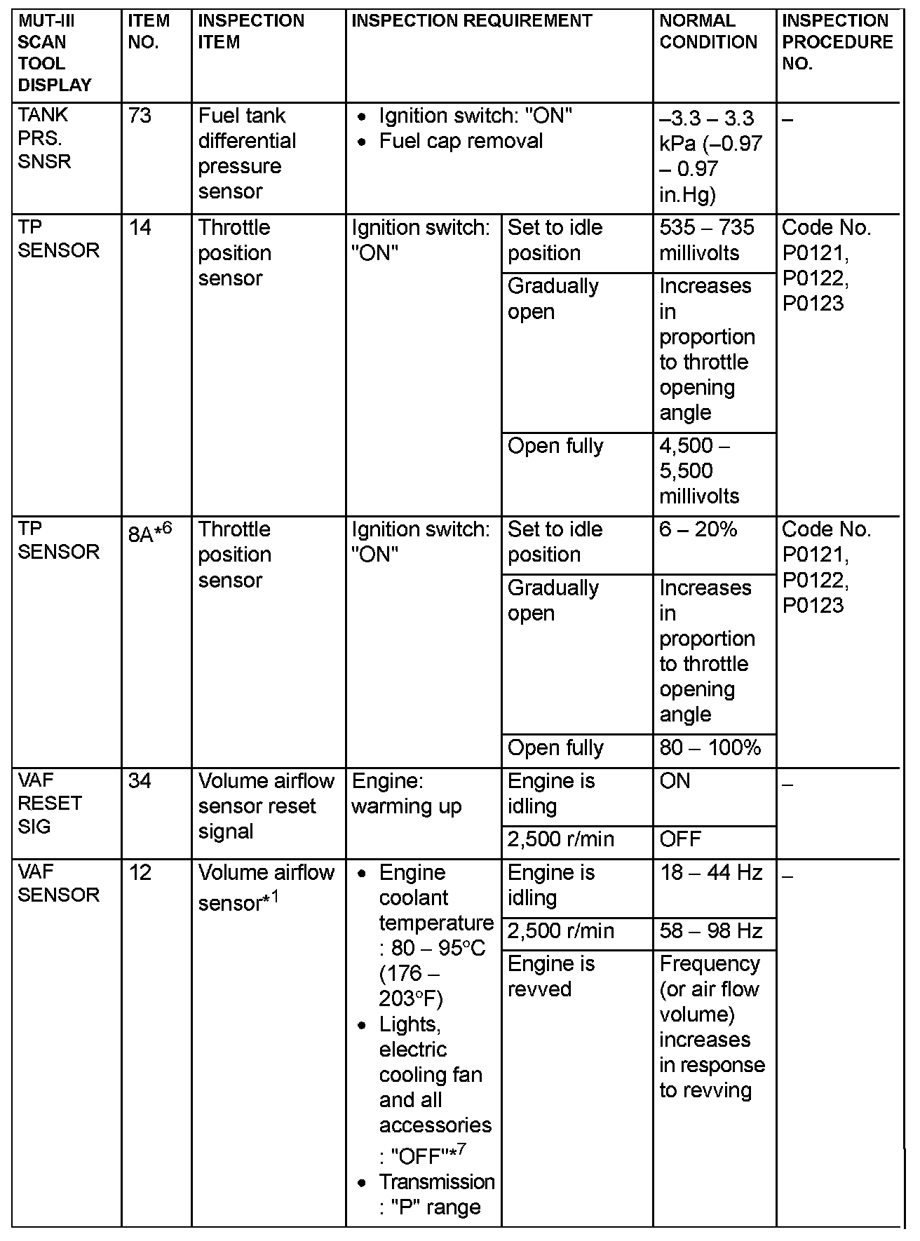 NOTE: *1: In a new vehicle [driven approximately 500 km (311 mile) or less], the volume airflow sensor output frequency is sometimes 10% higher than the standard frequency.
