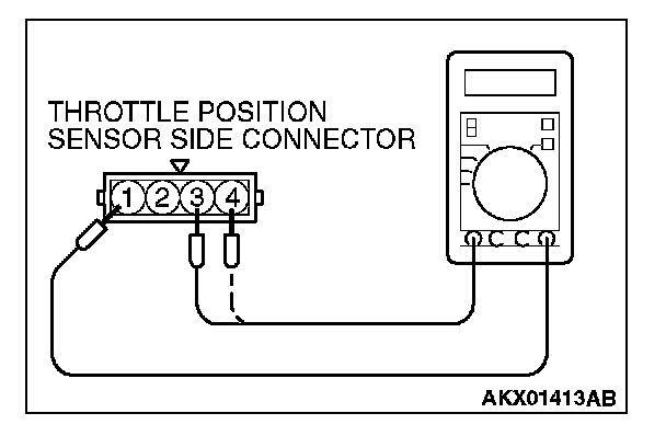 2. Measure resistance between the throttle position sensor side connector terminal No. 1 and terminal No. 4.