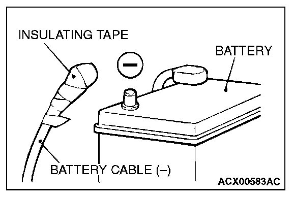Disconnect the negative (-) battery cable from the battery and tape the terminal to prevent accidental connection and deployment.