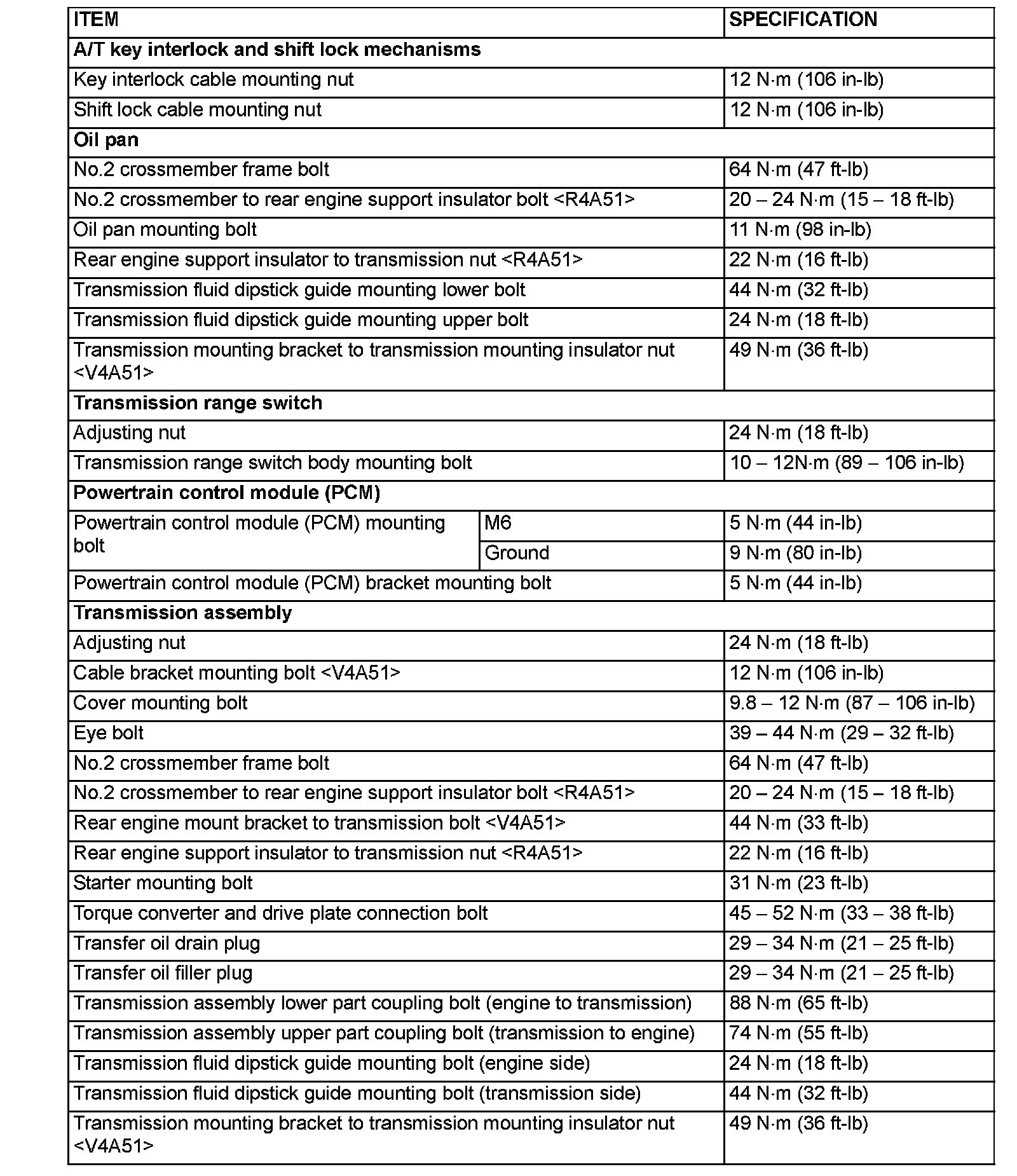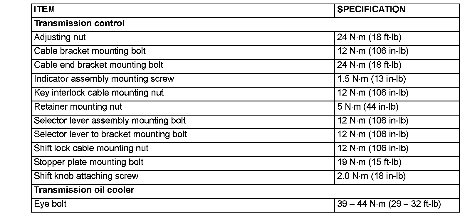 FASTENER TIGHTENING SPECIFICATIONS