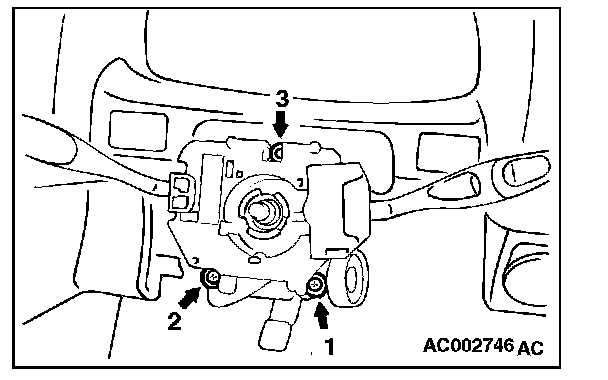 Tighten the column switch assembly mounting screws to the specified torque in the order of 1, 2 and 3.