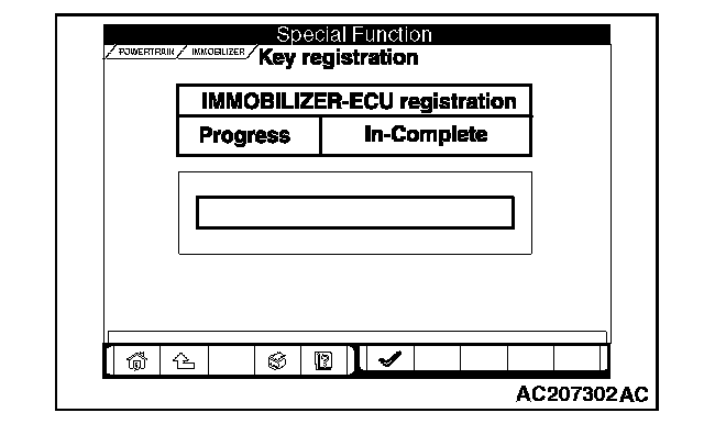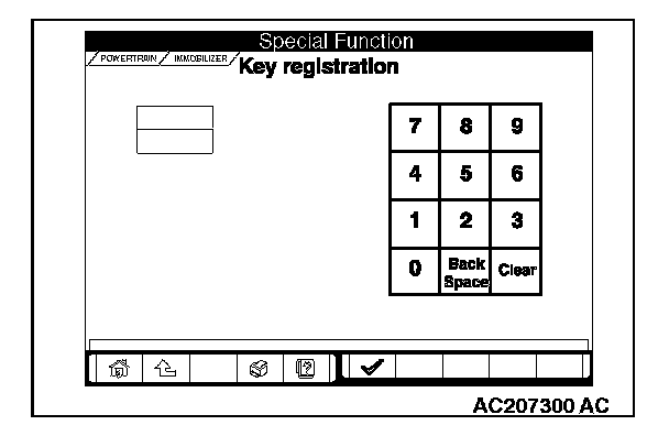 8. Enter the vehicle's password (secret code) on the "Key registration" screen, and then click the check mark icon. Follow the prompts on the screen to insert key(s) into the ignition switch to begin key registration.