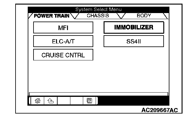 5. Choose "IMMOBILIZER" from the "POWER TRAIN" tab.