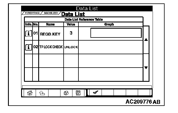 If the ignition key, Immobilizer-ECU, powertrain control module is replaced or an ignition key is added, encrypted codes of all the ignition keys must be registered. (A maximum of eight different ignition key can be registered). Moreover, when the immobilizer-ECU has been replaced, you will need to use scan tool MB991958 to register the immobilizer-ECU and input the vehicle secret code and to register the password (secret code) that the owner specifies into the immobilizer-ECU.