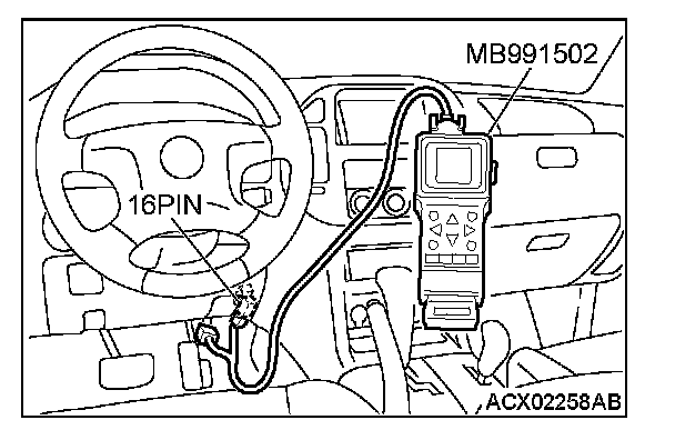 1. Connect scan tool MB991502 to the data link connector.
