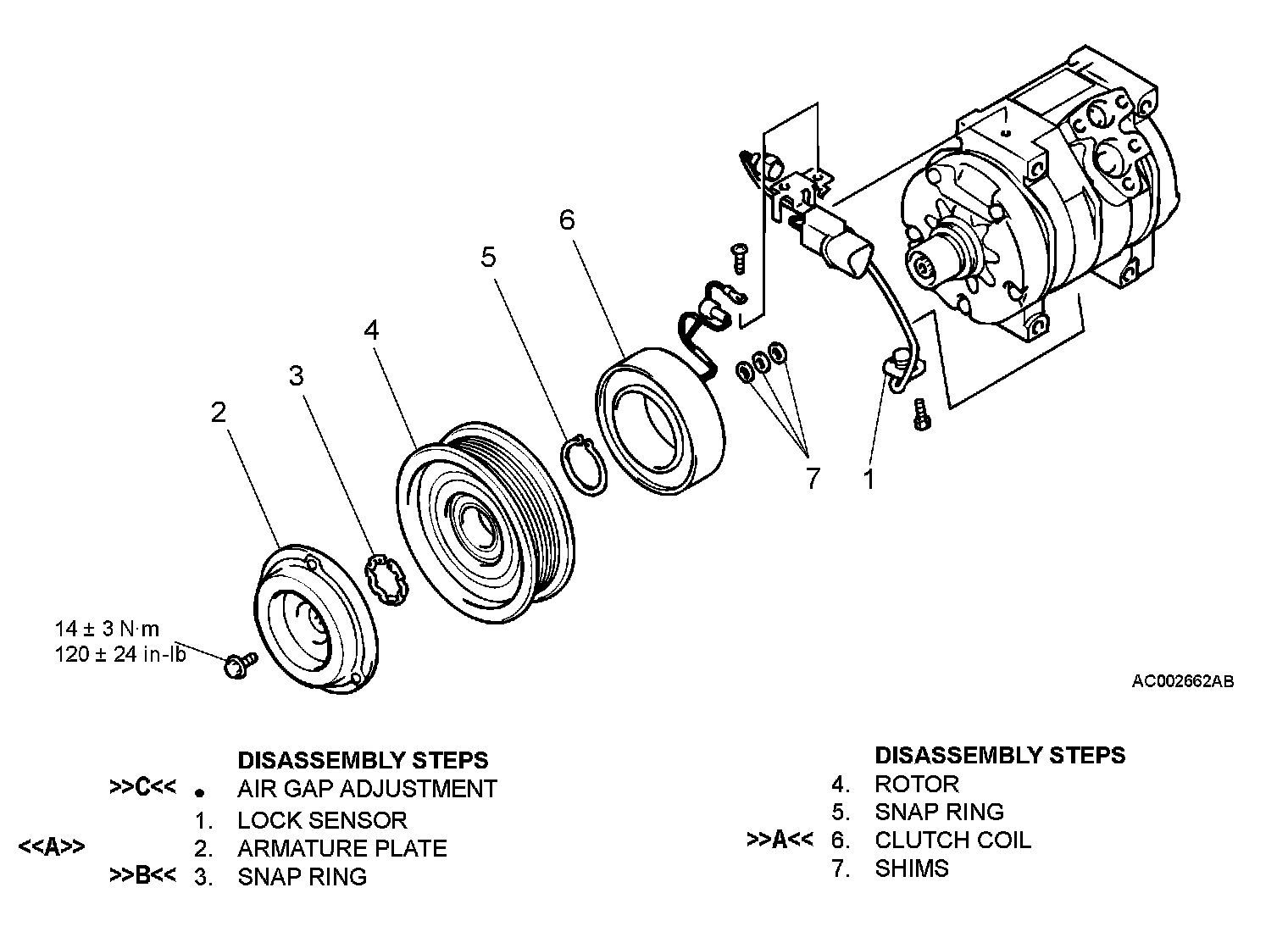 Install the clutch coil to the compressor, mating the compressor body slot to the clutch coil projection.