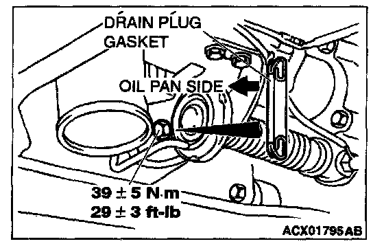 3. Replace the drain plug gasket with a new one, and then tighten the drain plug to the specified torque.
